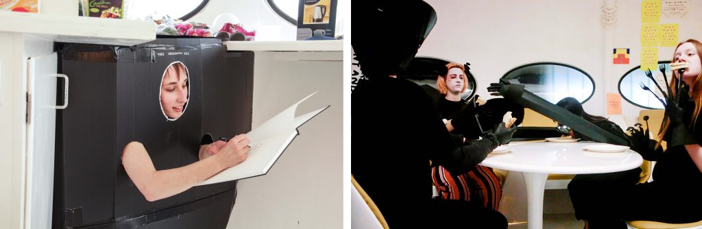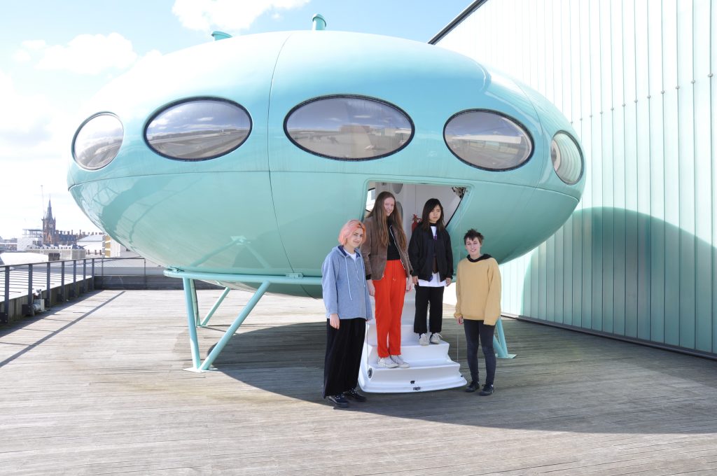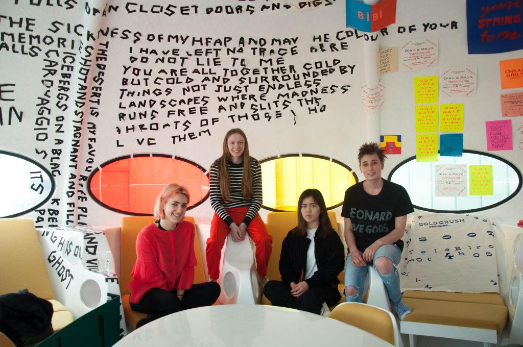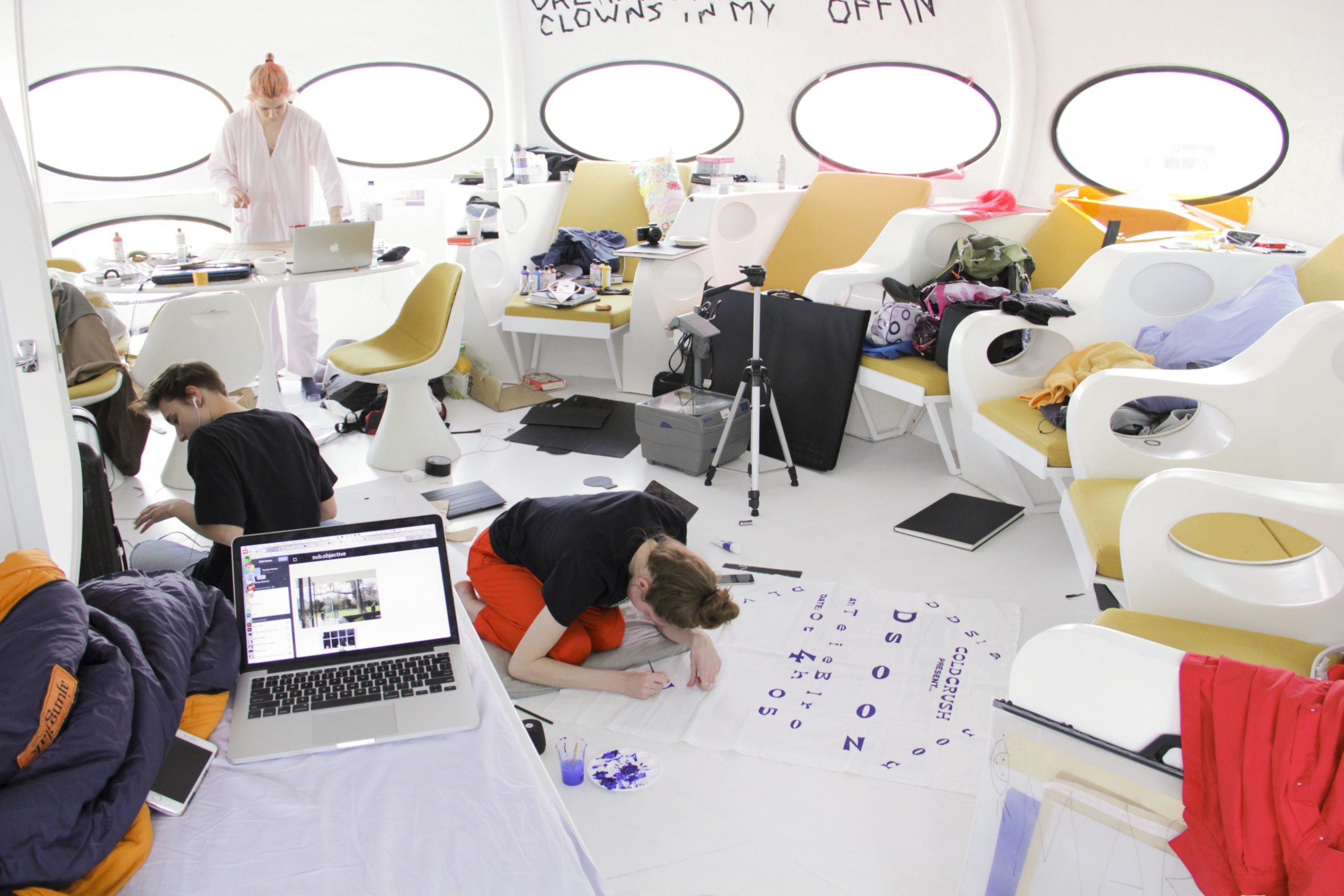 In April 2017, four art and design students were selected to inhabit the Futuro House on the roof of Central Saint Martins, King’s Cross. They were in continuous residence from 11am Tuesday 18 April until 5.45pm Saturday 22 April and took in all they needed to survive and make work throughout the duration of their stay.