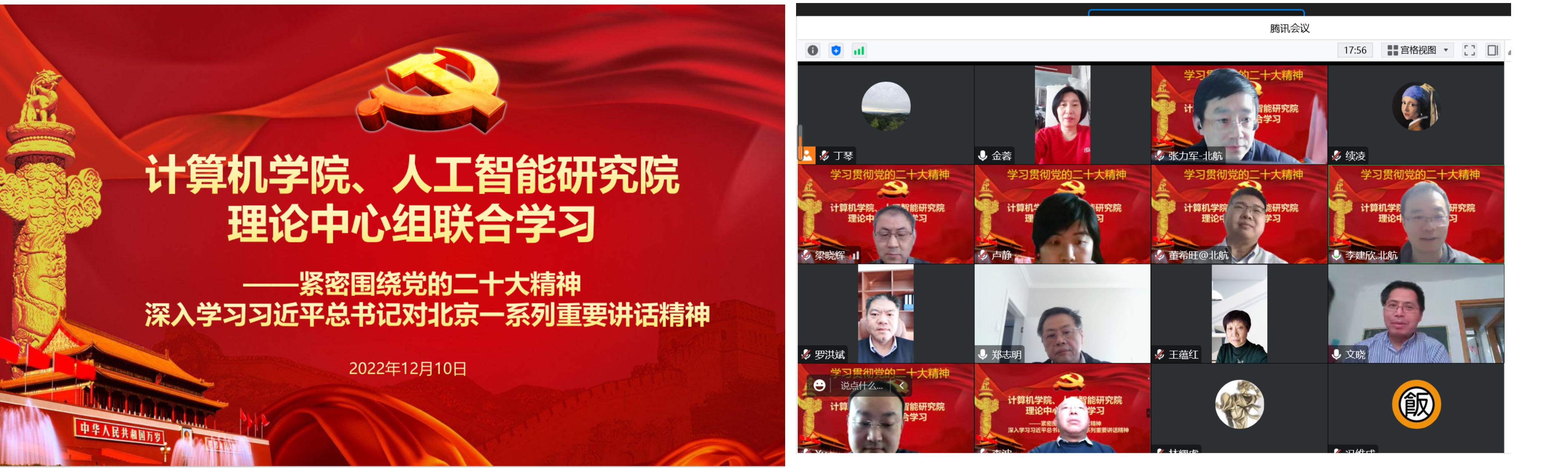 为进一步深入学习贯彻二十大精神,12月10日下午,永利集团和计算机公司围绕“深入学习习近平总书记对北京一系列重要讲话精神”主题举办理论中心组联合学习会。此次学习会采取线上会议的形式举行,两个党委及领导班子共计13人参加了学习,会议由人工智能研究公司党委书记金蓉主持。