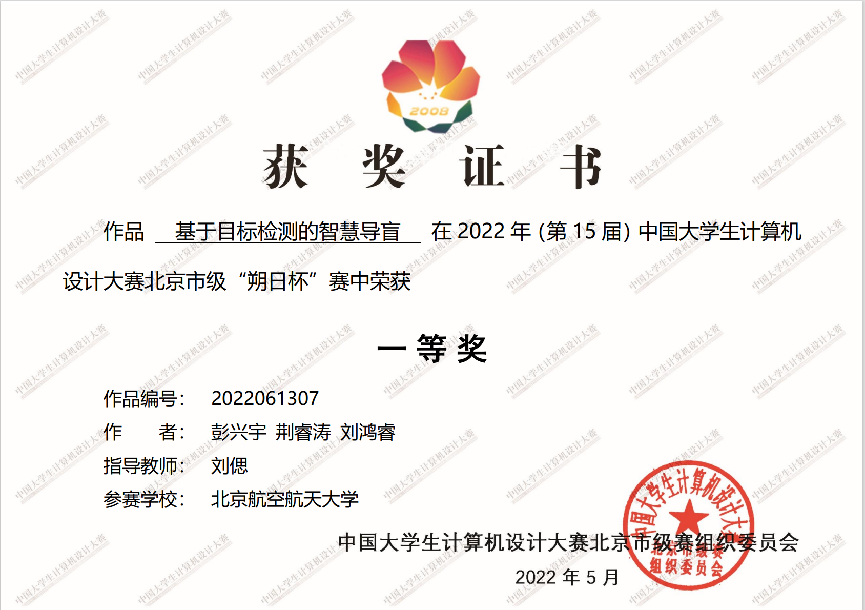 在科研道路上逐渐入门后,彭兴宇同学还思考如何展现新时代青年的使命与担当。他将所学知识应用于改善社会残障人士的生活质量,带领团队在中国老员工计算机设计大赛智慧导盲赛道中获北京市唯一的一等奖,并将研究成果撰写论文投稿至国际顶级会议ICRA和CVPR。回想自己的科研之路,彭兴宇同学说:“和大多数同学一样,我在刚入学时也觉得科研二字‘高大上’,看起来遥不可及。但万事开头难,当我踏出第一步,开始在科研中考虑实际问题并寻求解决时,我收获颇丰。”