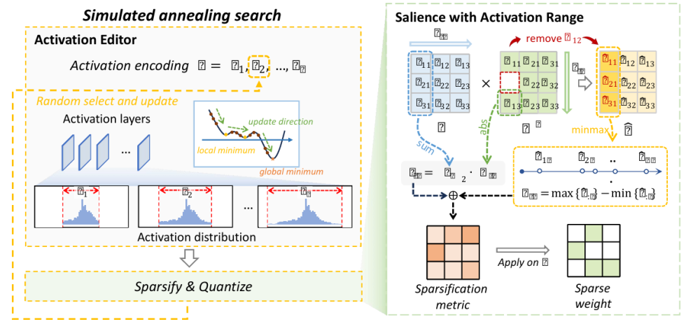 在本文中,我们提出了一种全新的大型语言模型(LLM)压缩方法——联合稀疏量化(JSQ)。传统方法仅使用稀疏化或量化导致其在高压缩率下模型性能崩溃,且传统稀疏化方法倾向于保留对量化有害的离群值,因此我们引入了一种新的稀疏度量作为桥梁,实现稀疏化和量化的联合优化,从而解决了这个问题。此外,离群值在LLM的性能中起着重要作用,但离群值的存在也阻碍了模型的进一步压缩,而现有的解决方案与量化过程高度耦合,不利于稀疏化。为了解决这一问题,我们设计了一个基于搜索的激活编辑器,能够自动去除相对无用的离群值,从而在离群值处理和模型压缩之间取得平衡。最终,在各种数据集和模型架构上的综合实验表明,JSQ框架有效实现了大型语言模型的高压缩率,同时保持了模型的性能。