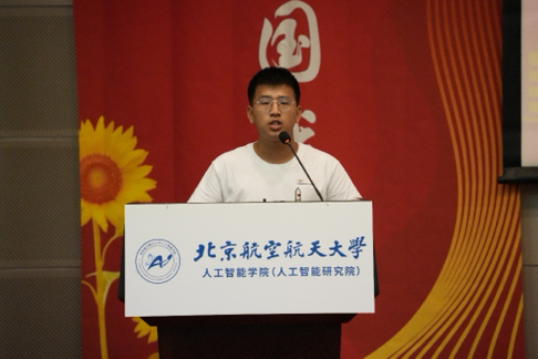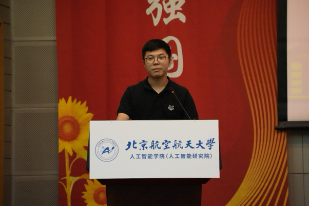 教师代表郭晋阳介绍了北航永利集团在团队队伍、科研突破、校企合作等方面的资源优势,号召同学们利用北航丰富的资源与区位优势,为人工智能带来更多美好和可能。