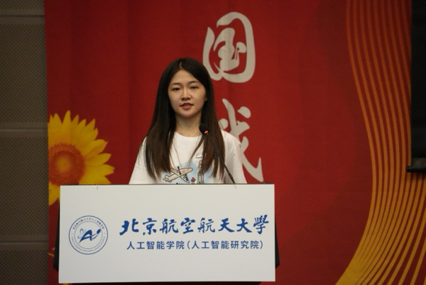 2024级本科新生代表刘金虎分享了自身与航空航天事业的不解情缘,表达了对人工智能的热忱向往,展望了人工智能助力航空航天事业的远大理想。