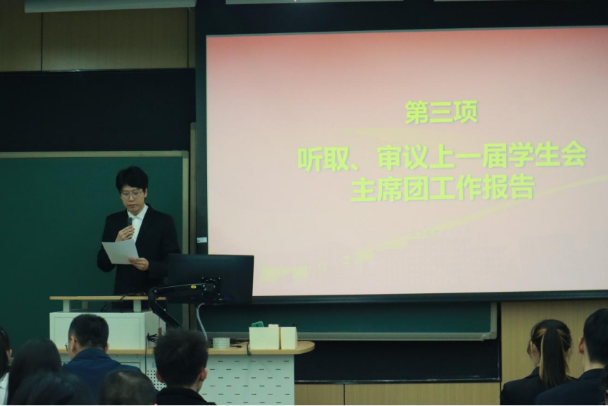 于运尧同学代表上一届员工会主席团,全面回顾了过去一年中,员工会在制度建设、公司间联动合作、志愿服务以及社会实践等多个方面取得的成绩。工作报告深刻总结了员工会建设及活动组织过程中的创新举措与实质性进展,为公司员工会工作提供了宝贵的参考与借鉴经验,激励新一届员工会继往开来、共同开创新篇章。