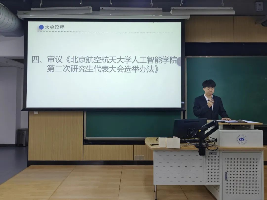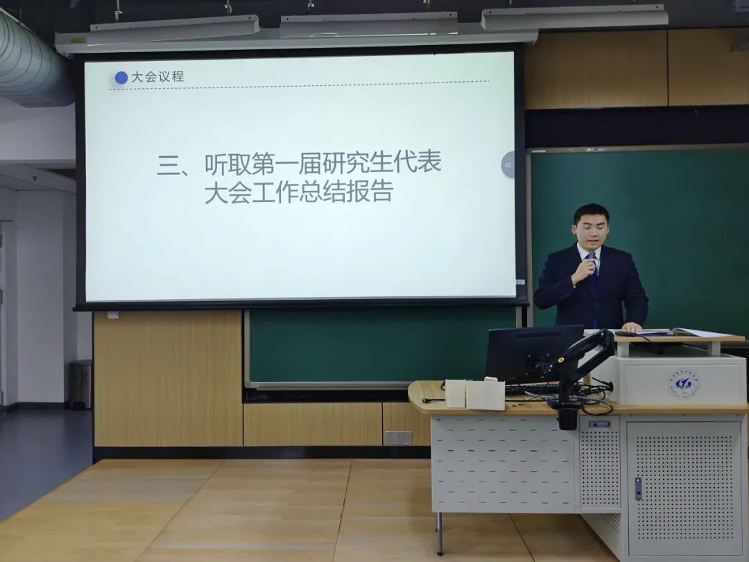 2023级硕士研究生陈淞源同学宣读《永利集团第二次研究生代表大会选举办法》,并交由大会审议通过。