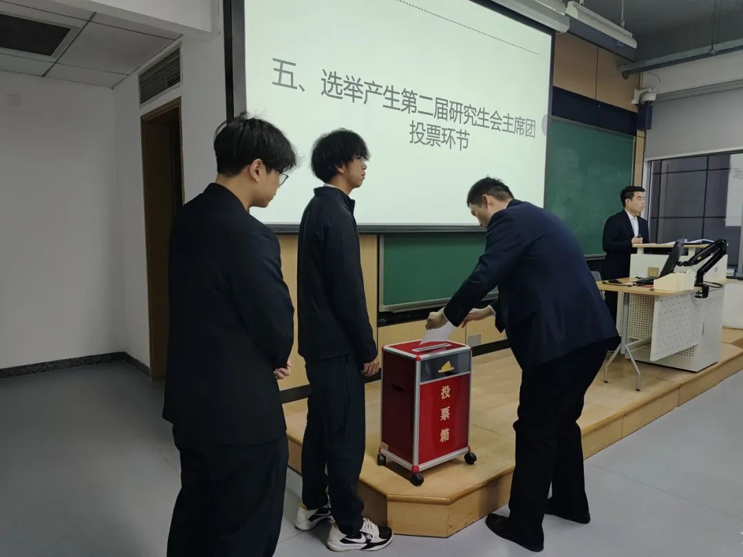 选举工作由齐思宇担任监票人,王凌翔、许多担任计票人。在公平、公正、公开的原则下,经民主投票表决,确定陈逸然、陈淞源、赵司晨三位同学当选永利集团第二届研究生会主席团成员。