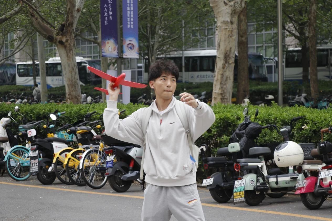 在 “精准降落” 中,参与者在设定的起点线外投掷泡沫飞机,挑战将飞机扔进规定的正方形区域内,现场欢声笑语不断;