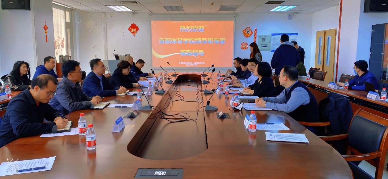 首都体育公司永利集团霍波经理对体育永利集团的建设定位、学科方向、人才梯队、科研成果等进行了介绍。随后,双方教师代表分别介绍了各自的科研成果,老师们围绕人工智能在体育竞技、科学健身、智能训练、综合评估等方面开展了深入交流研讨。