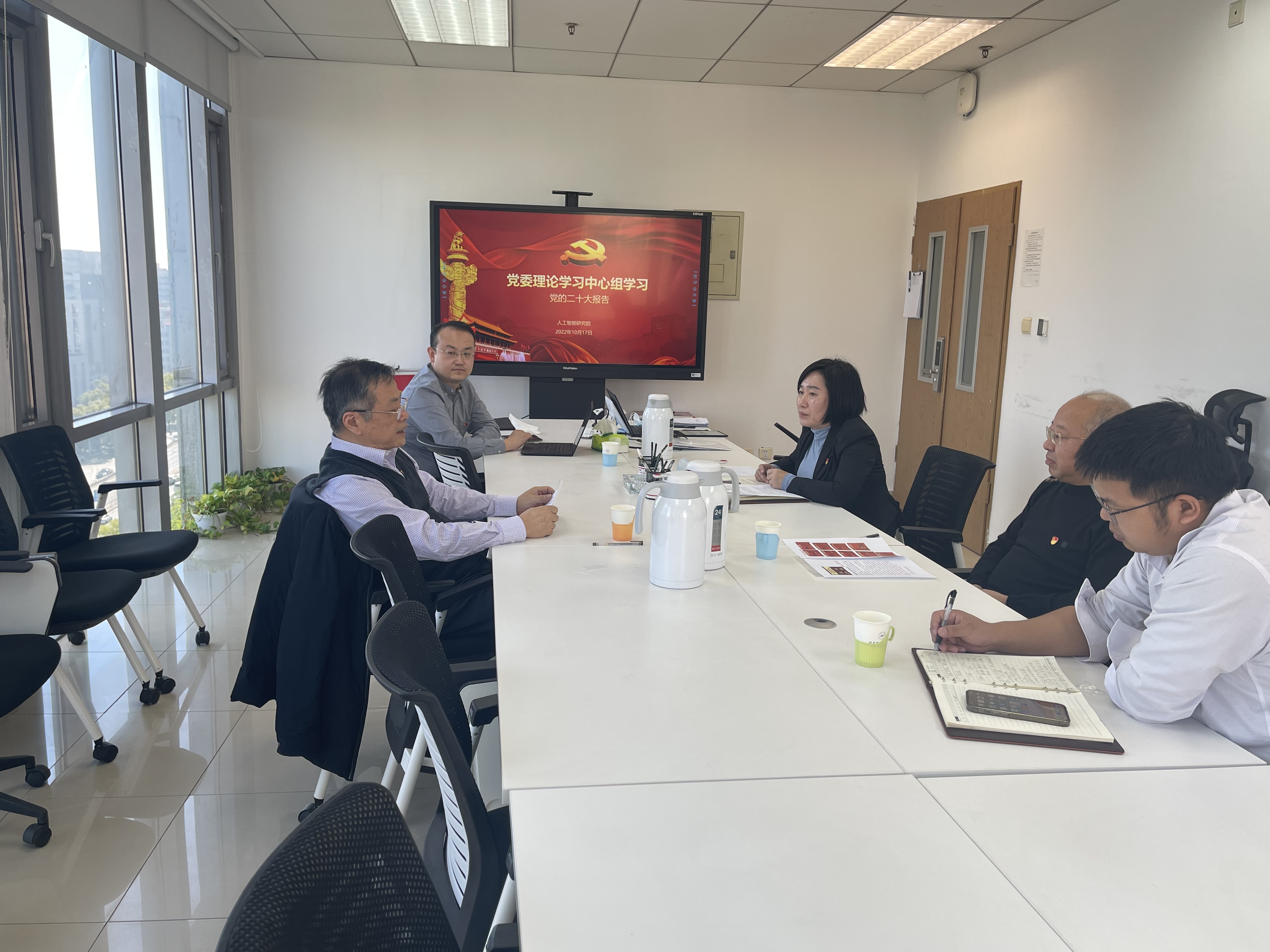 10月17日上午,研究院理论中心组开展二十大专题学习,党委书记金蓉系统领学了党的二十大精神,结合研究院工作实际对学习贯彻党的二十大精神工作进行了部署。她表示要深刻理解“教育、科技、人才是全面建设社会主义现代化国家的基础性、战略性支撑”的重要论述,自觉将科技第一生产力、人才第一资源、创新第一动力融合起来,充分发挥基础研究主力军和重大科技突破生力军作用,集聚力量进行原创性引领性科技攻关,奋力支撑和服务国家高水平科技自立自强。要以建校70周年为新的起点,迅速将党的二十大精神全面融入团队建设、人才培养、科研创新、团队队伍等各项工作中,以党的二十大精神武装头脑、指导实践、推动工作。