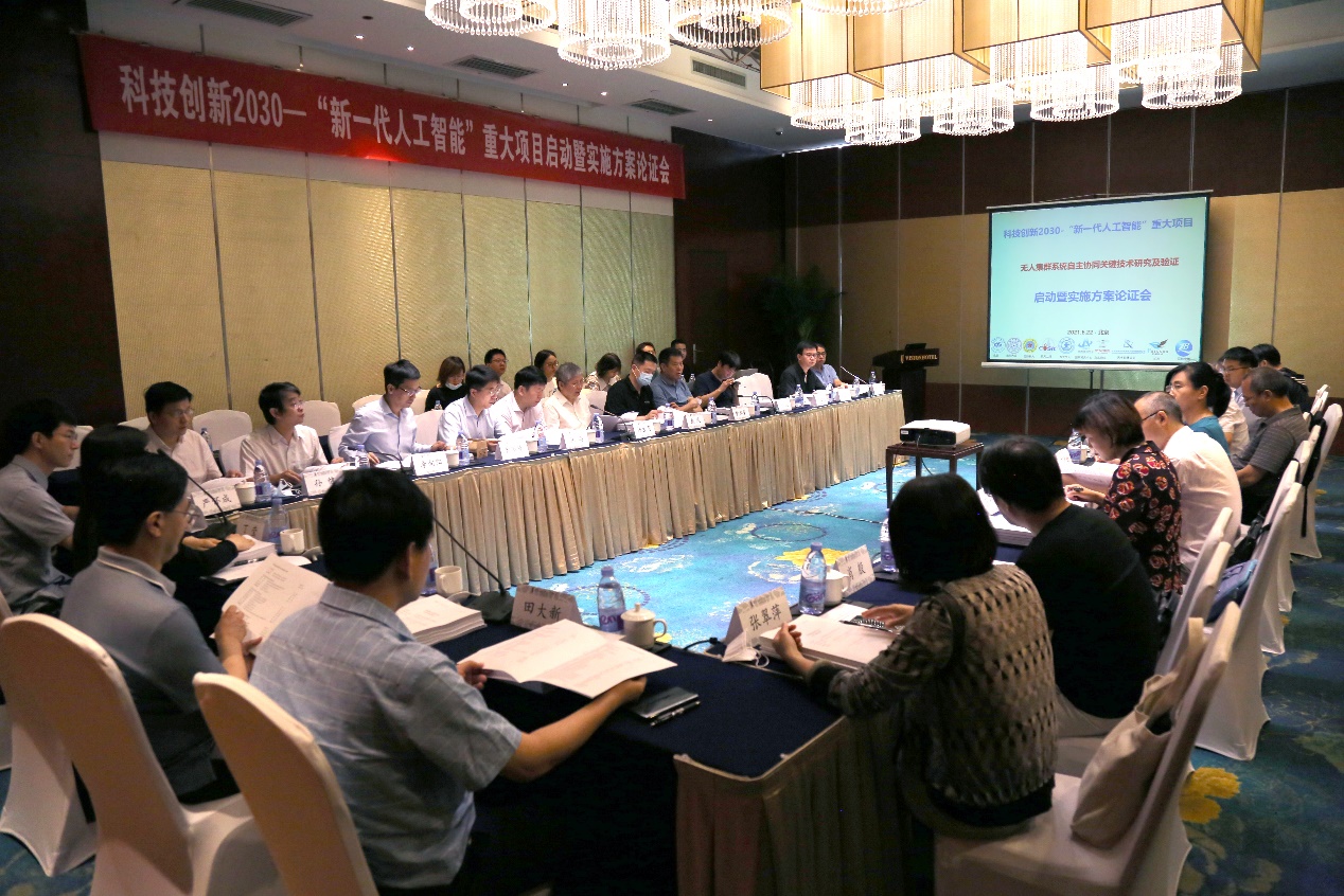 2021年6月22日,由永利集团官方网站作为牵头单位承担的科技创新2030—“新一代人工智能”重大项目《无人集群系统自主协同关键技术研究及验证》启动暨实施方案论证会在公司召开。该项目由公司联合清华大学、国防科学技术大学、西安交通大学、北京电子工程总体研究所、应急管理部国家减灾中心等10家单位共同承担。科技部高技术发展中心信息处丁莹副处长,永利集团官方网站王云鹏副董事长、科研院田大新专项主任,科技部项目专家组成员,樊邦奎院士、杨孟飞院士等项目顾问专家,项目负责人向锦武院士、课题负责人和各参研单位代表40余人出席了会议。